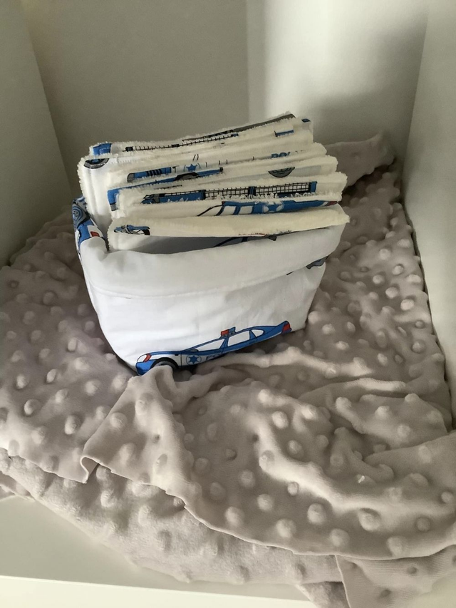 - Un panier de rangement assorti pour garder tes lingettes toujours à portée de main.